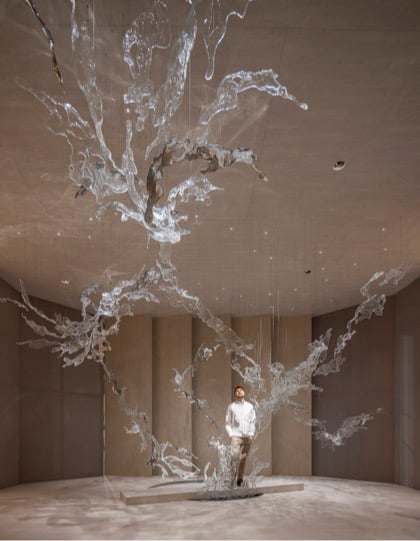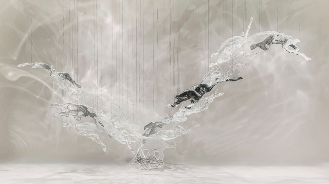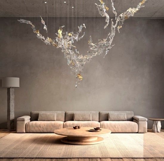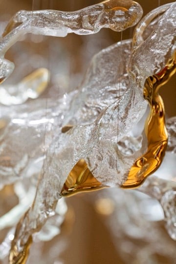 Splash is a glass lighting installation by Lasvit designer Martin Gallo that explores the emotional resonance of water and its fluid, ever-changing forms. Designed to evoke a spectrum of moods – from the serenity of a calm pond, through the joy of children splashing in puddles, to the power of a raging river – the fused glass installation reflects the shifting nature of water.