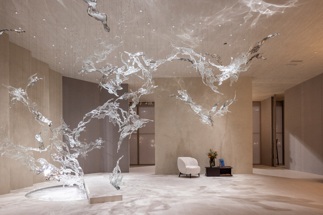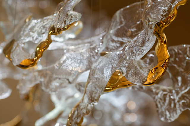 Splash is a glass lighting installation by Lasvit designer Martin Gallo that explores the emotional resonance of water and its fluid, ever-changing forms. Designed to evoke a spectrum of moods – from the serenity of a calm pond, through the joy of children splashing in puddles, to the power of a raging river – the fused glass installation reflects the shifting nature of water.