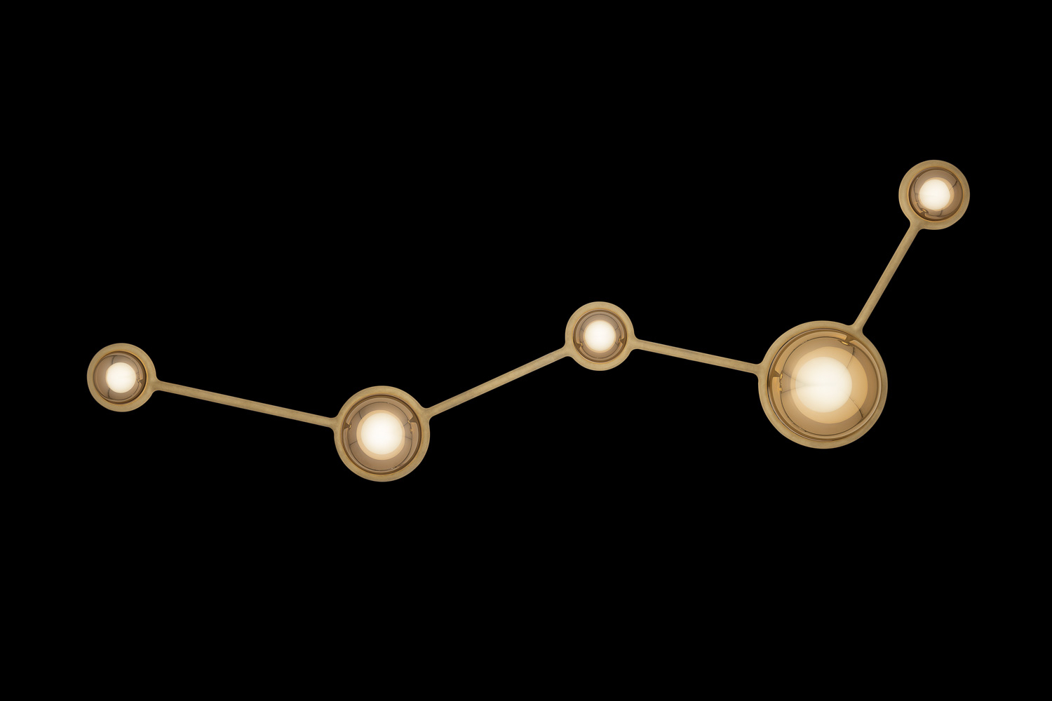 Constellation was designed by American architect and designer David Rockwell. He is the founder of the Rockwell Group, a cross-disciplinary architecture and design firm based in New York City. In fact, it is the city's sky at night that informs the Constellation collection's design. The Grand Central Terminal, with its expansive celestial ceiling mural, is the perfect space to house the Constellation collection - uplifting visitors from their daily commute to an ethereal spatial experience. The collection offers a ceiling lamp, a wall sconce and a floor lamp, each representing Cassiopeia, Orion's Belt and Polaris respectively. Hand-crafted metal connects the luminaires in each unique piece, allowing onlookers to feel as if they are staring up into a starry, night sky. Each piece is modular and offered in bespoke configurations. Wherever displayed, the light becomes the focal point of the space, evoking awe and wonder.