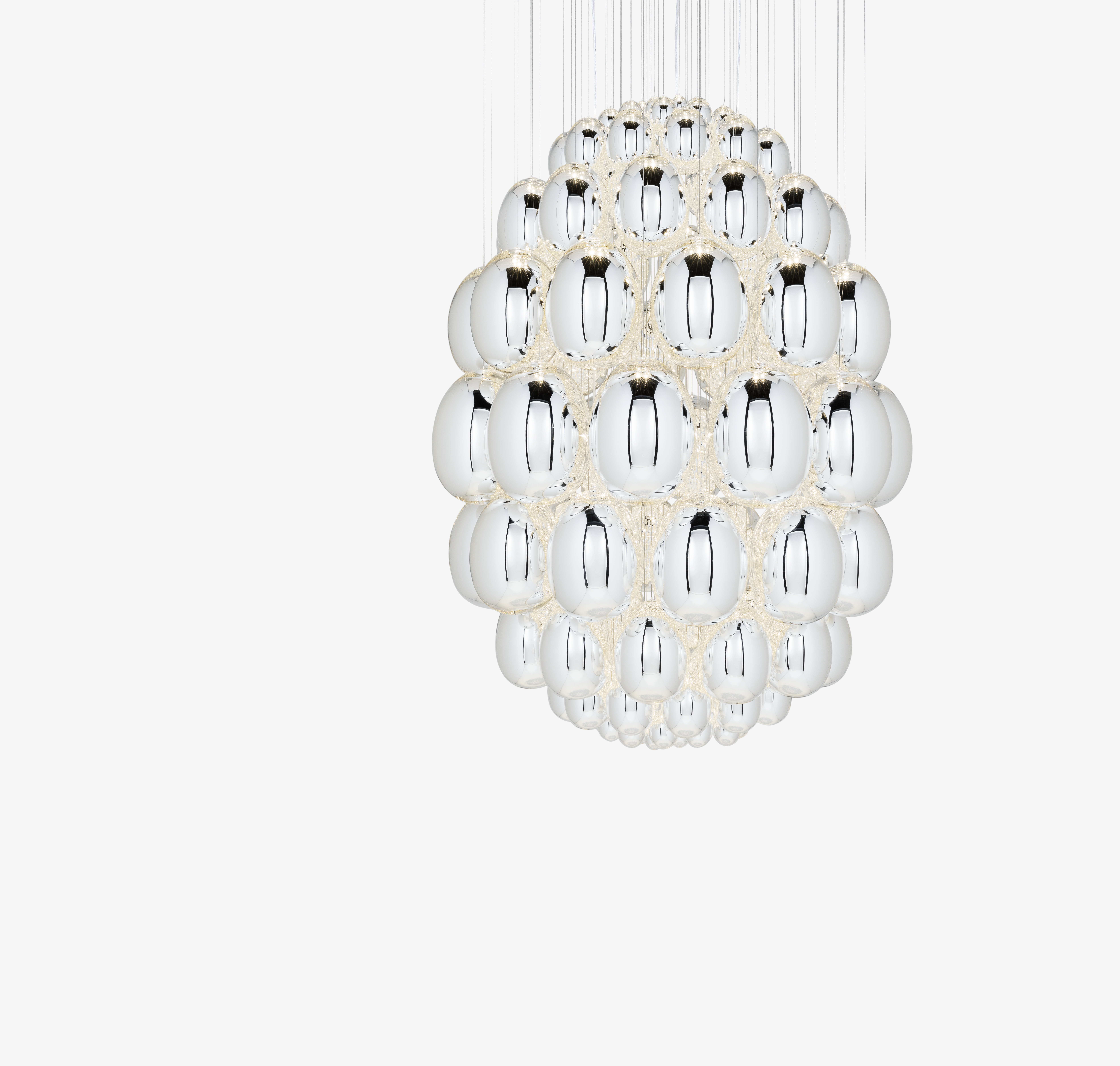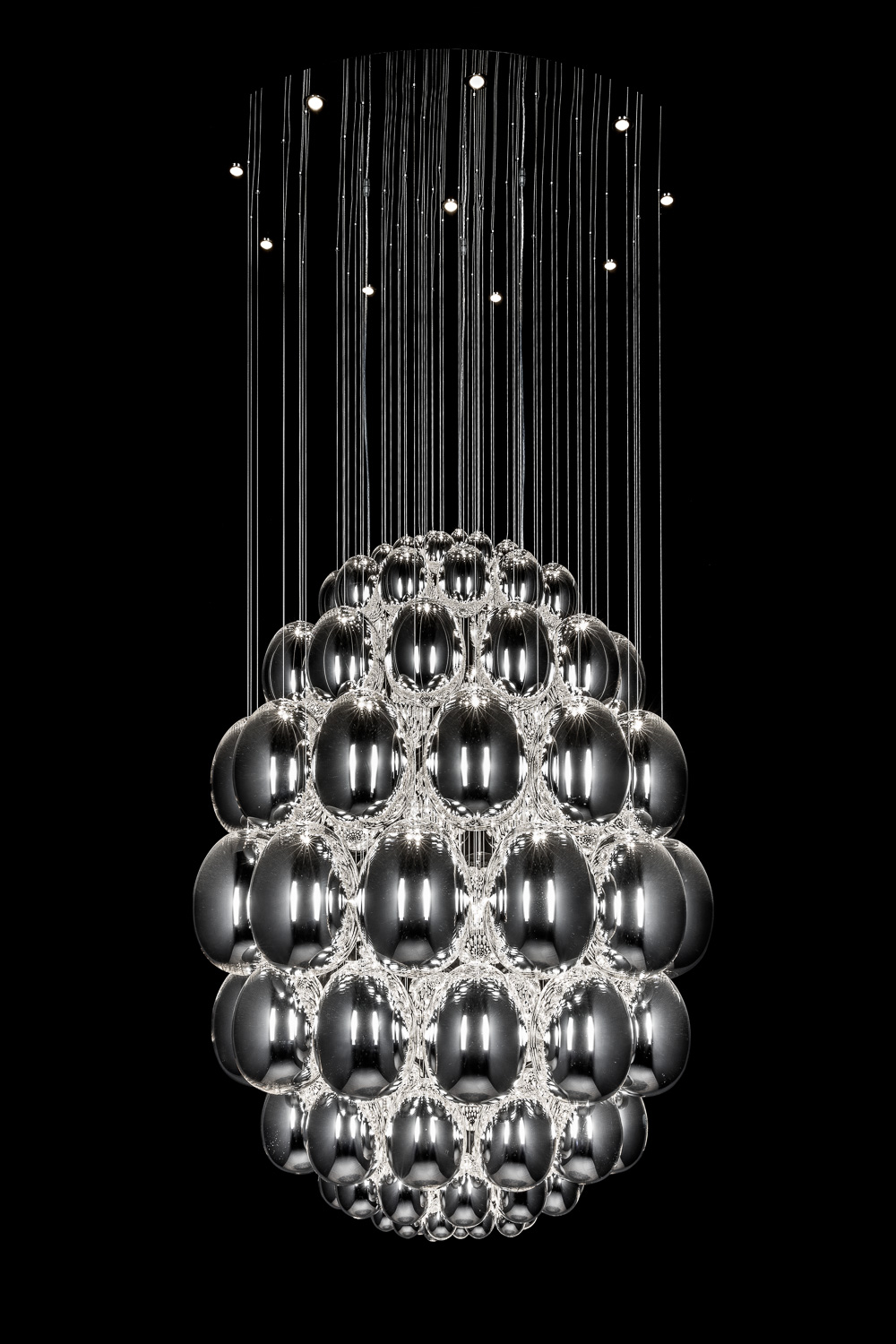 Like something from a fairytale, Uovos – eggs – sparkle like a radiant and mystical gem in a faraway land. These reflective art glass lighting sculptures shines like a mountain of precious rounded mirrors, capturing nearby objects and multiplying them to infinity.
