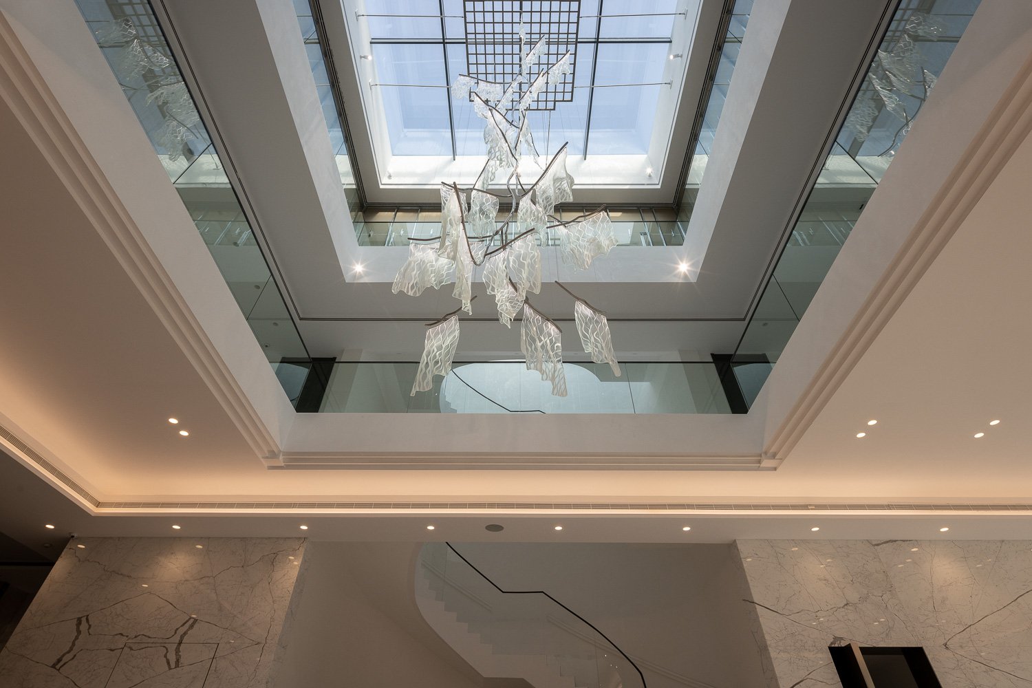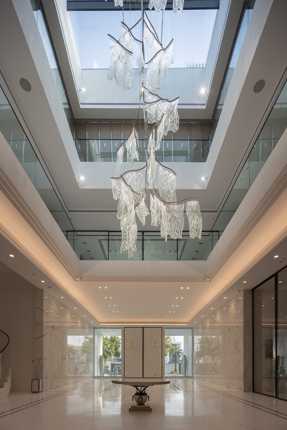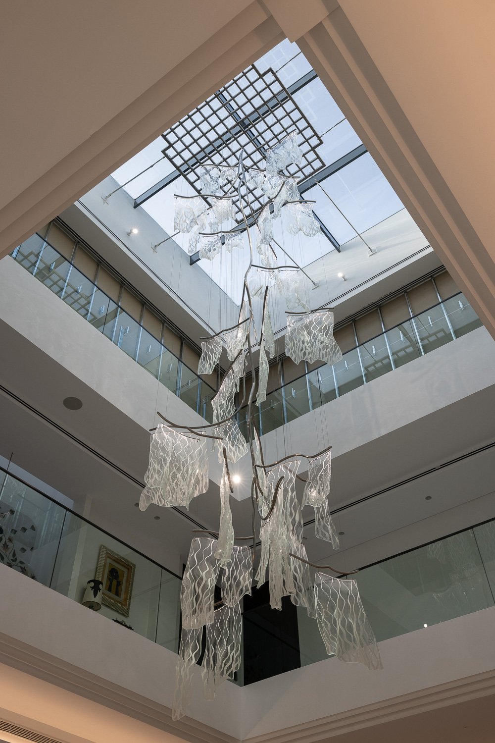 Inspired by the quiet magic of frozen morning dew, this bespoke glass sculpture was created for entrepreneur Sima Ganwani Ved and now graces her private villa in Dubai's elite Emirates Hills. Can you hear the glistening effect of dew crystals?