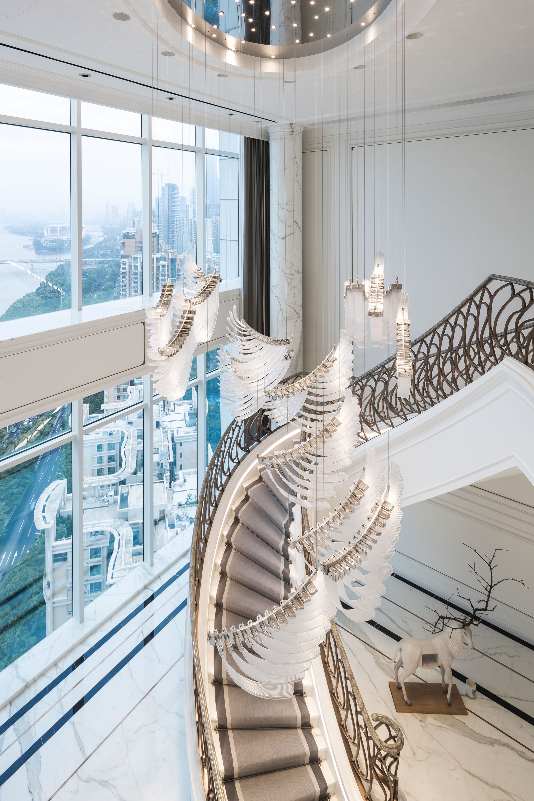 This major port and transportation hub have for thousand years kept its finger on the pulse of time and market. Thanks to LASVIT one of the residences in Guangzhou is adorned by the first kinetic installation in China designed by Petra Krausova. Overall twenty pendants fill the hall in the residence with fragile beauty.
