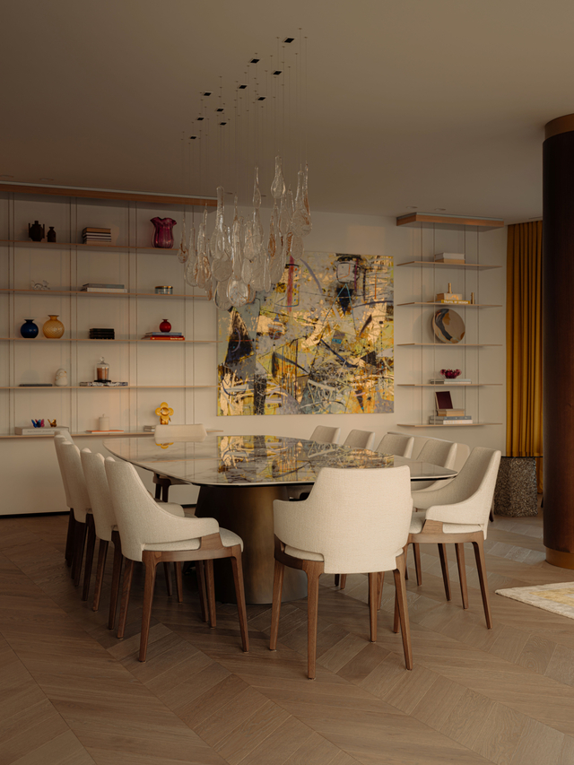 In a private residence designed by AKKA Interiors high above Almaty, the Herbarium installation by Lasvit brings nature into the skyline. Photographed by Mart Gossens, the glowing sculpture welcomes a family of four and their guests, honoring Kazakhstan’s culture of hospitality with a radiant focal point.