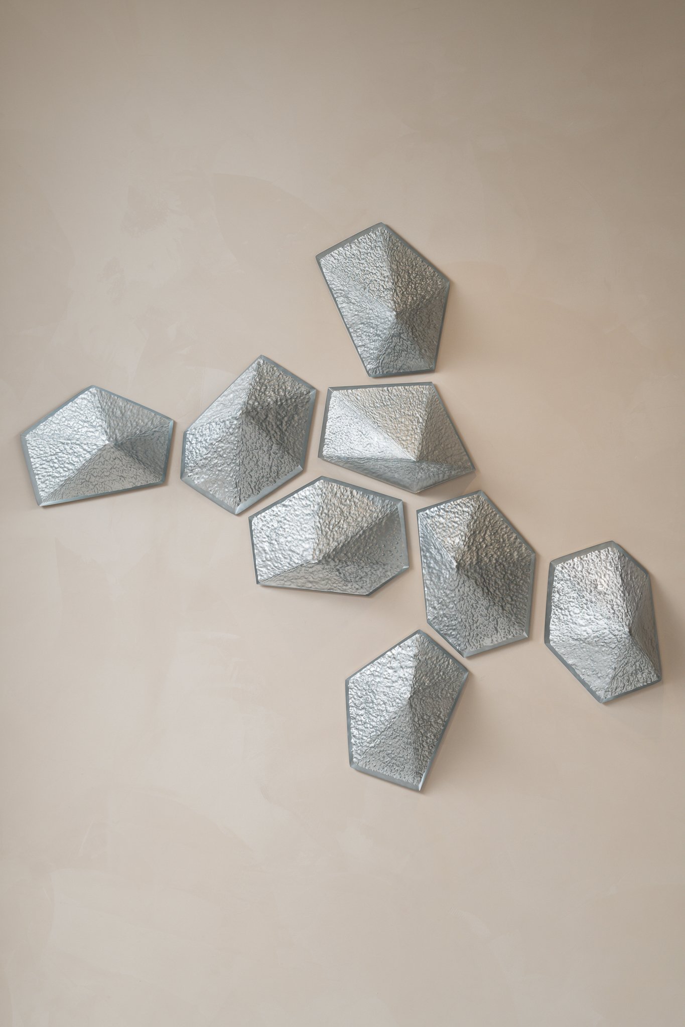 “I imagined people who once lived here,” says Mihailović. “They had no other choice but to depend on the gifts of nature. I captured the hopeful moment when fruits appear.” The floor sculpture reflects this vision: a stylized bush, grounded in metal, bearing glass fruits in various stages of ripeness — some cracked open, others just beginning to swell.